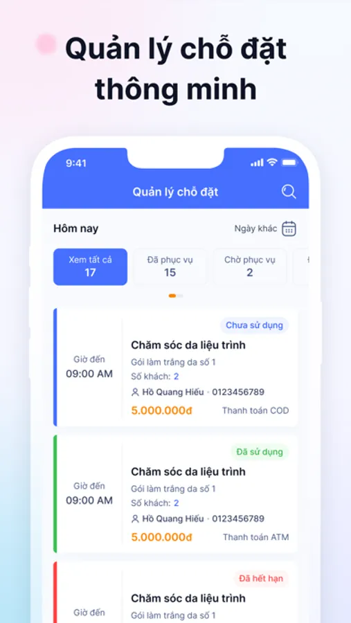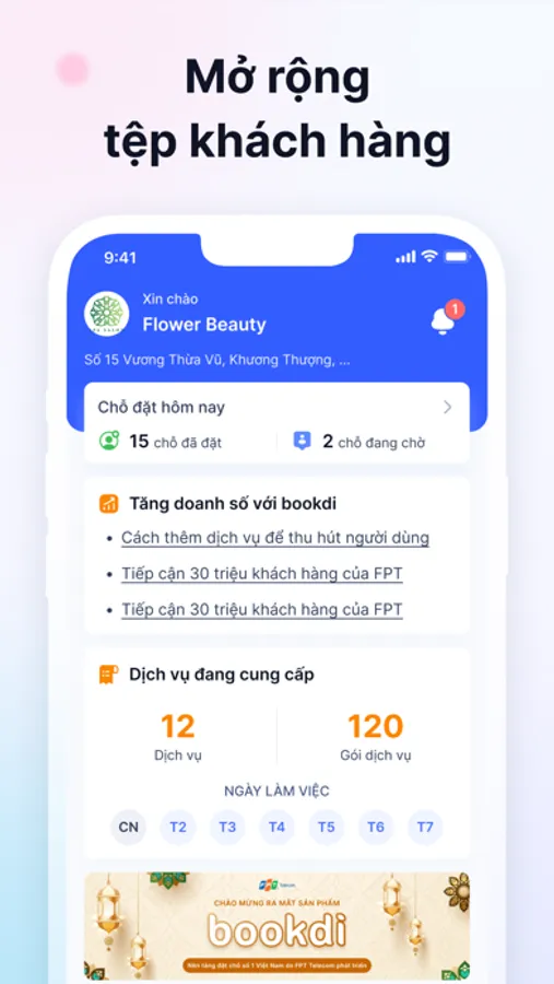 Ứng dụng quản lý Bookdi Merchant dành cho chủ cơ sở kinh doanh dịch vụ Salon & Nail, Spa & Làm đẹp, Nha khoa.