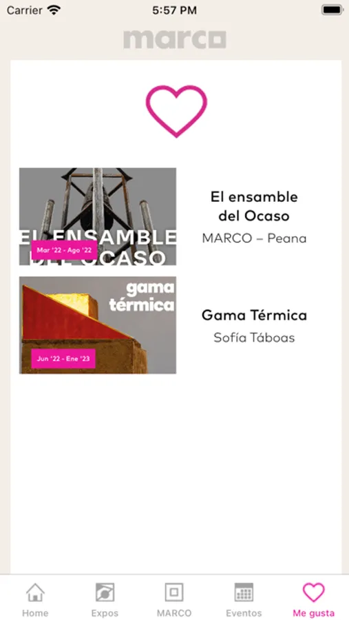 - Me gusta: Enlista tus exposiciones favoritas