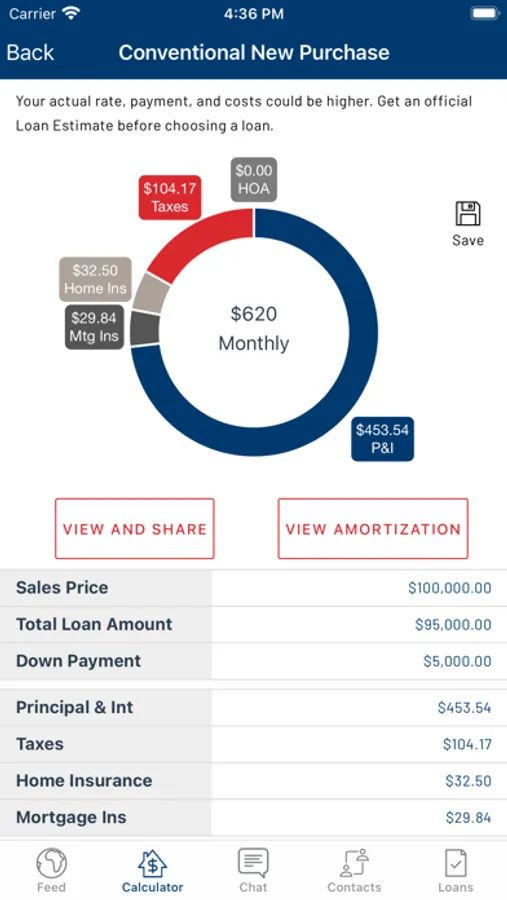 The calculations provided by the AMNB Home Loans Mobile App are useful in giving you an idea of what homeownership might mean for you. However, please be sure to contact your American National Loan Officer for a customized solution tailored to your specific financial situation, needs, and goals. Your Loan Officer can also assist you with any questions you have about your loan and the loan approval process.