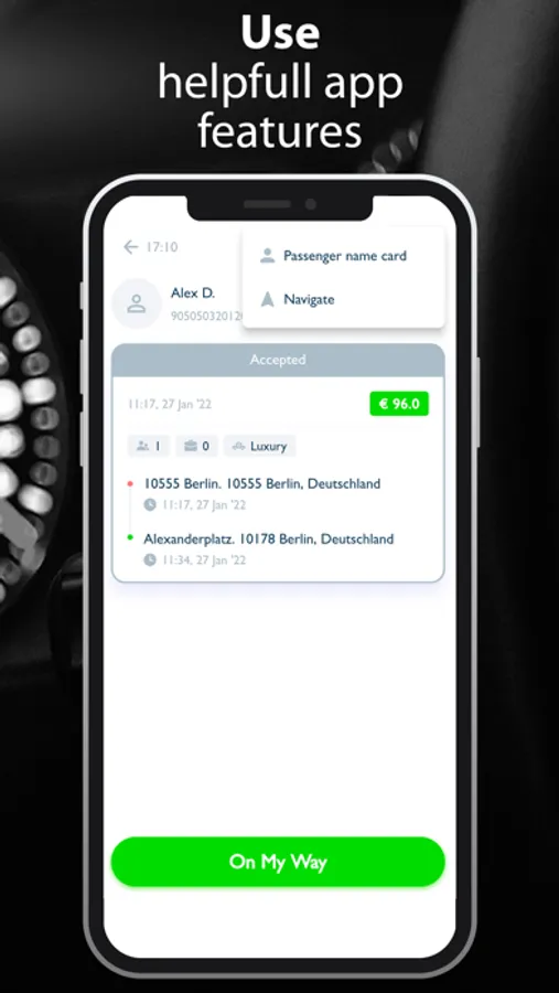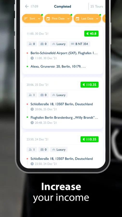 Better Bookings: Receive requests for airport transfers, intercity trips, and hourly services. Review the fare and route details before you accept.