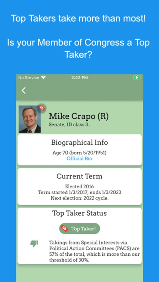The Top Takers app helps you to push back against the influence of money in US Federal politics.
