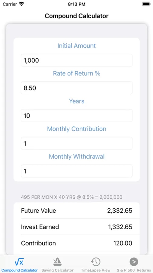 The Save Compound app provides users with a powerful set of financial planning tools to help them achieve their saving and investing goals. Let's take a closer look at each tab and its features: