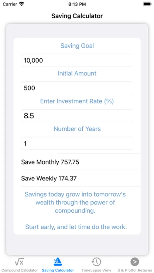 Overall, the Save Compound app combines these four tabs to provide a comprehensive financial planning tool. It helps users understand the power of compounding, plan their saving and investing strategies, analyze historical market performance, and track the growth of their investments over time. Whether users are saving for short-term goals or long-term financial security, this app offers the features and functionalities needed to support their financial journey. #financialplanning #investing