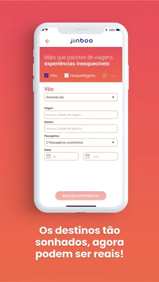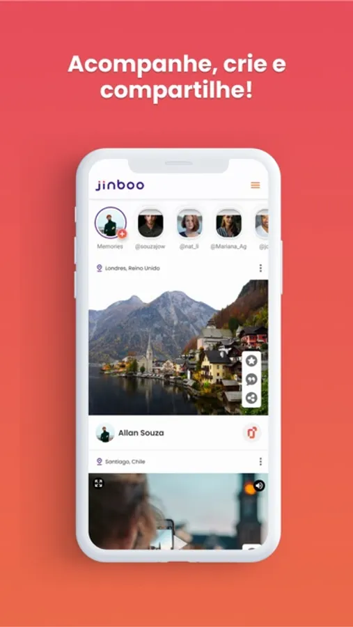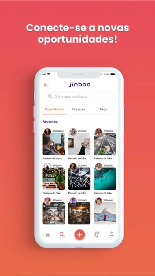 Com o Jinboo é possível fazer amigos, viajar, viver experiências e planejar seu próximo destino, tudo ao mesmo tempo, agora. Tenha um novo olhar sobre o que gostaria de viver e veja que seus sonhos podem ser reais. Sua próxima experiência está a um Jinboo de distância.