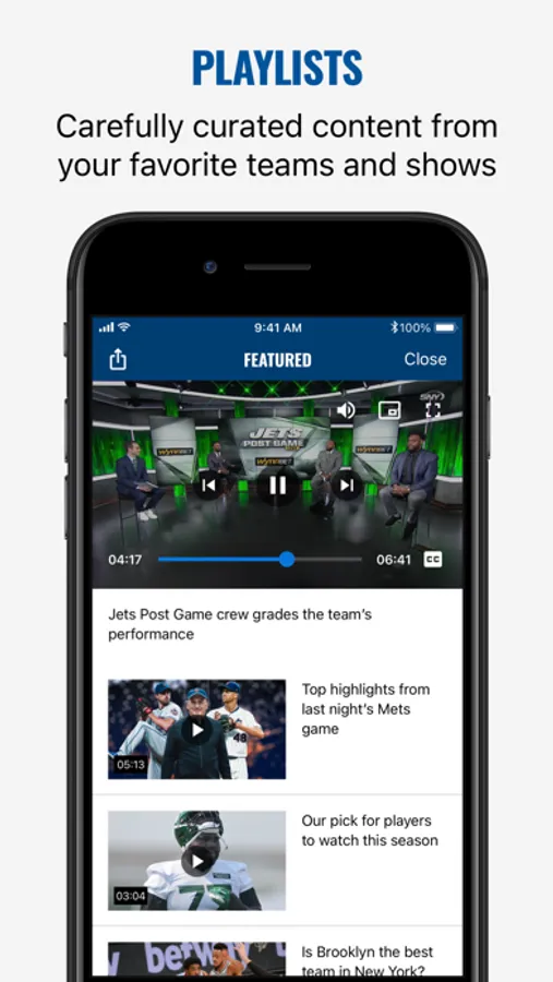 Catch highlights and live action from your favorite New York sports teams: New York Mets, New York Yankees, New York Jets, New York Giants, New York Knicks, Brooklyn Nets, New York Rangers, New York Islanders, New Jersey Devils and Uconn Women's Basketball.