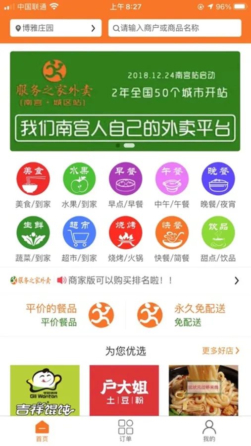 服务之家外卖,免配送费的外卖、免配送费的便利店、免配送费的果蔬、同城便捷的跑腿服务。您所需要的,轻松一点,免费送到家!