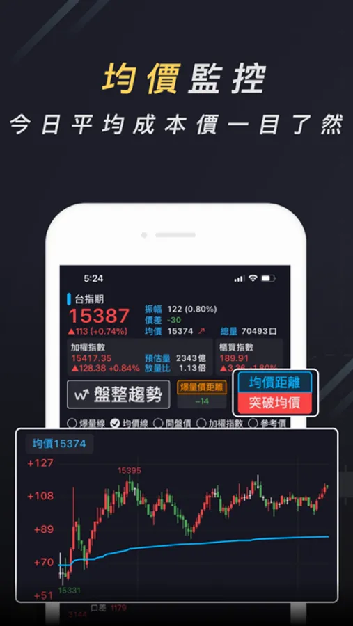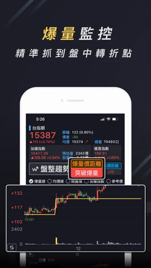 我們提供期貨「即時指標」、「爆量監控」、「均價監控」、「盤後籌碼」、「即時聊天室」等超級好用的功能 ! 馬上免費下載~