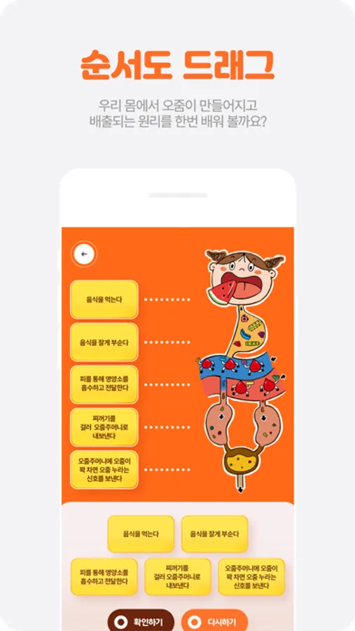 순서도 드래드 게임으로 오줌이 배출되는 과정을 더 잘 이해해요