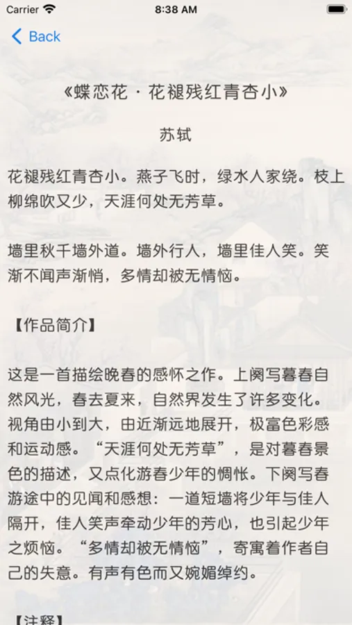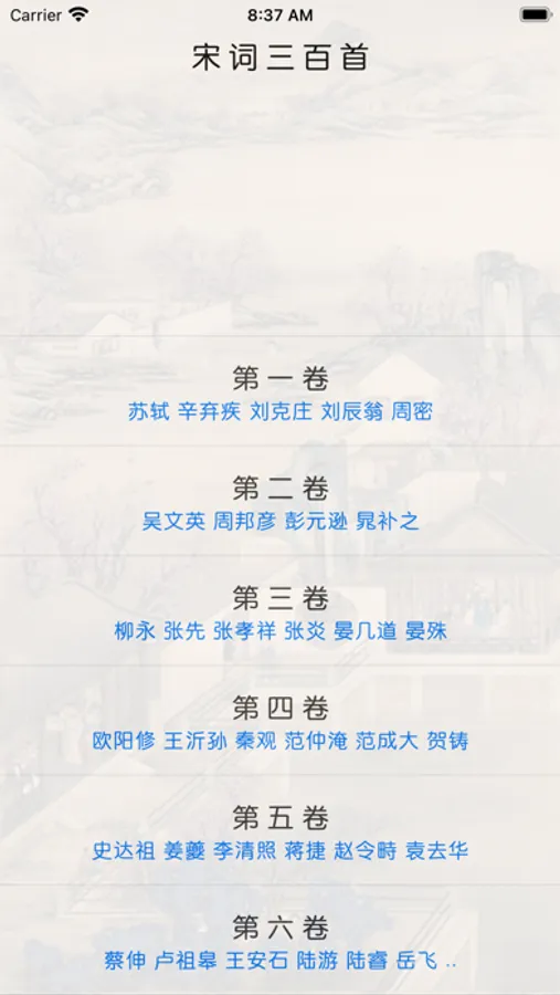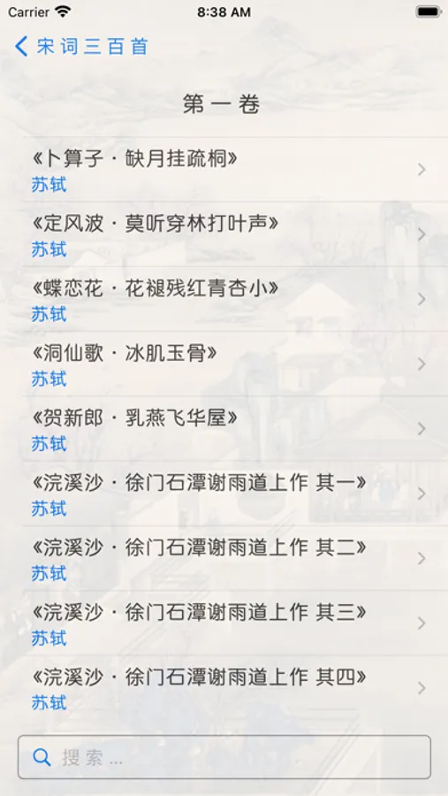 宋词三百首(简体)共收录宋词三百多首,每首宋词均含有原文、赏析、解释,作者和词牌介绍,是学习宋词的好助手。宋词的代表人物主要有苏轼、辛弃疾(豪放派代表词人)、柳永、李清照(婉约派代表词人)。
