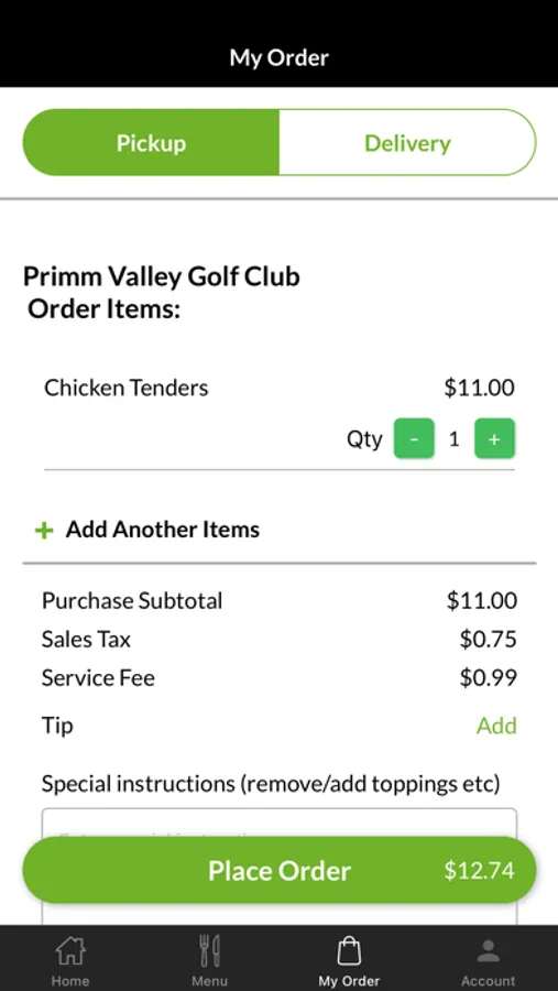As a user, you'll have the option to choose to have your order delivered to your cart or pick it up at the snack bar.