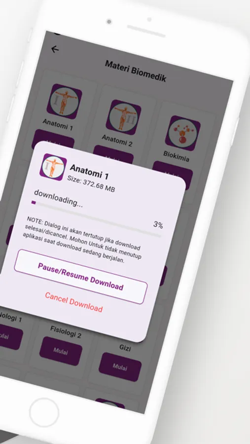 Aplikasi "M3 Ilmu Dasar Fisioterapi" merupakan aplikasi yang berisi materi ilmu dasarfisioterapi dilengkapi dengan audio visual interaktif. Didalamnya para member dapat mendownload/menjalankan materi.