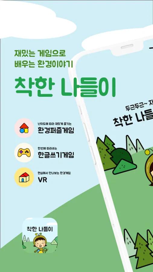 게임과 교재, AR을 통해 재미있게 환경을 배우는 교육용 앱니다.