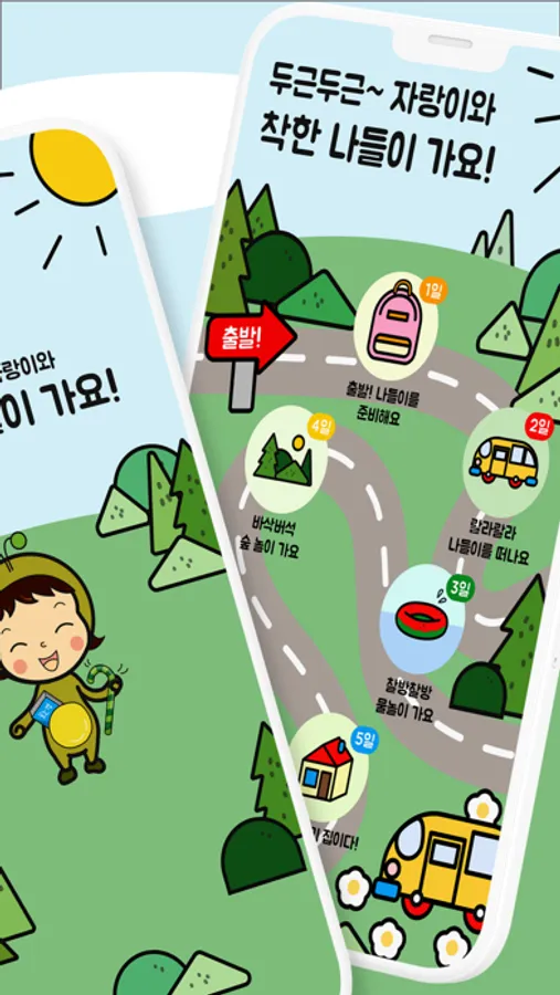자랑이와 함께 나들이하며 5가지 환경주제인 물, 환경보건, 생태계, 에너지, 자원순환을 배웁니다.