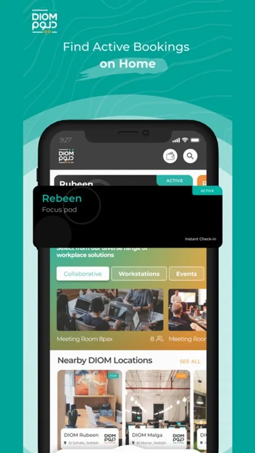 DIOM app enables you to book and access the workspace that you need to get your work done, whether you need a semi-private space, shared space, or a meeting room, and whether it's for one hour or longer periods.