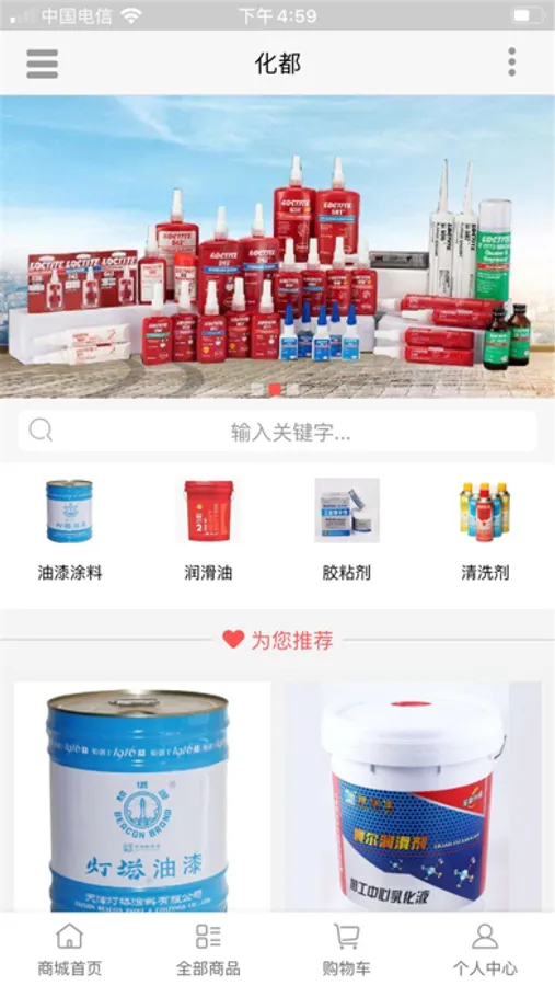 化都是一款专业从事化工产品销售的APP,有工业化工、民用化工、农业化工、药业化工、润滑油、润滑脂、清洗剂、油漆、涂料、胶粘剂、化工原料、化学试剂等上万种商品。