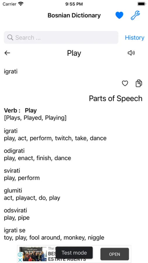 This app includes meaning of word in Bosnian, synonyms, antonyms and other advanced features