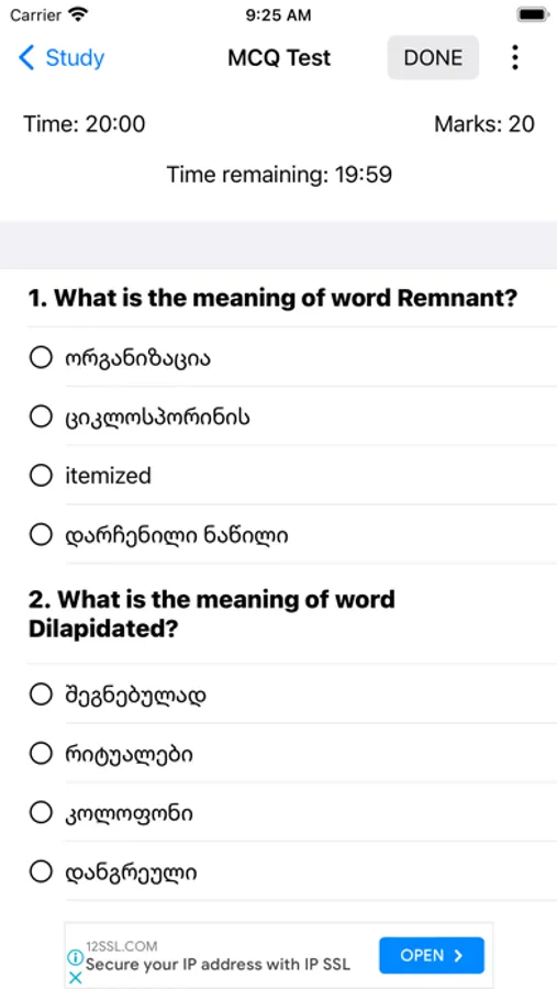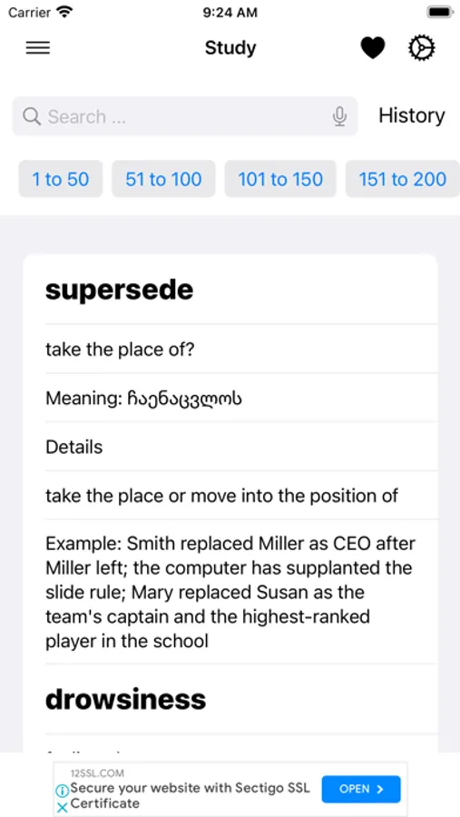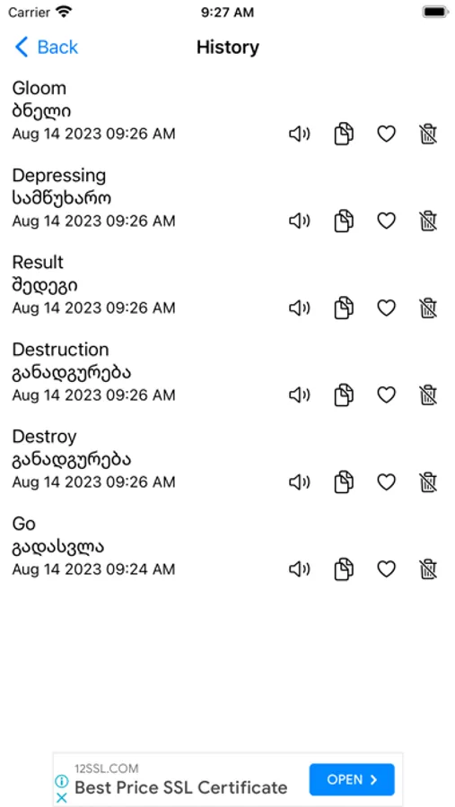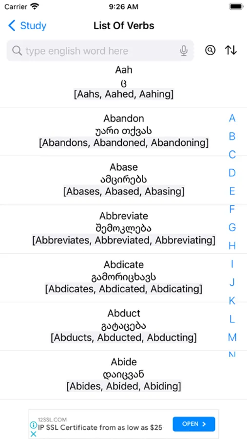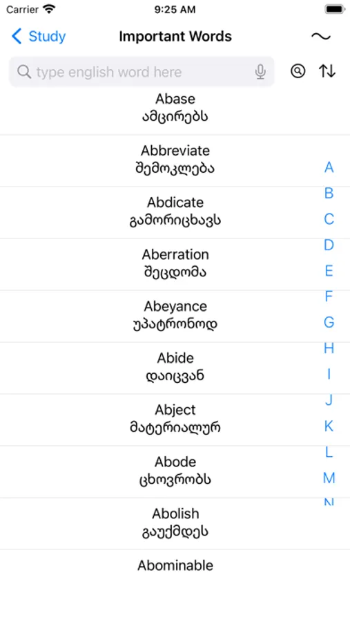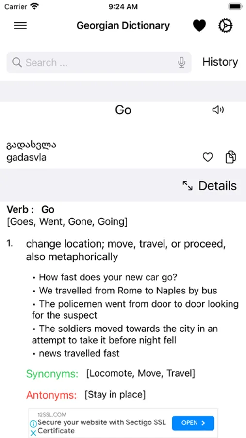 This app includes meaning of word in Georgian, synonyms, antonyms and other advanced features