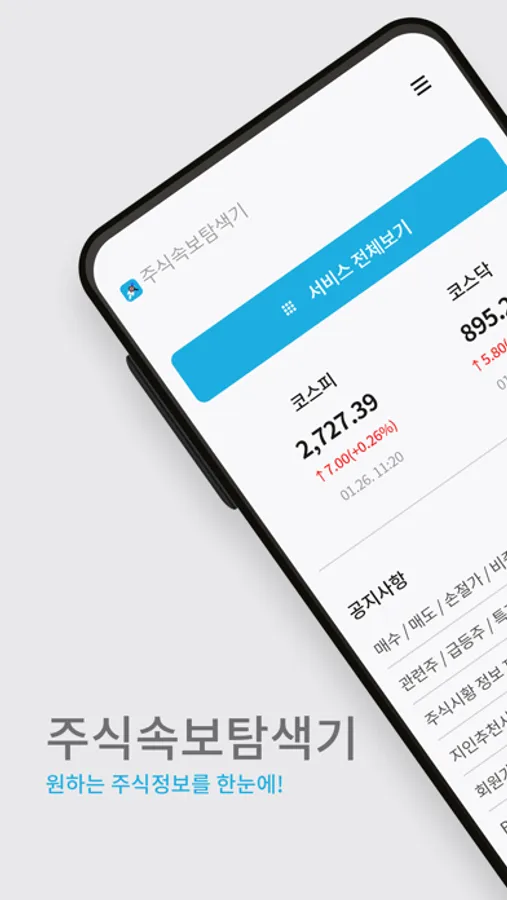 - 특징주, 단독기사, 속보기사, 주요공시 까지 주식속보탐색기에서