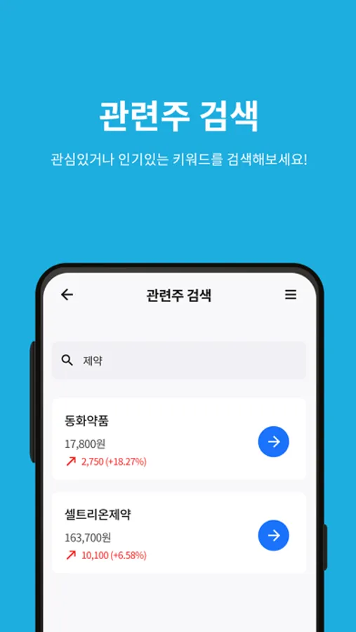 - 관련주 검색기능을 활용하여 특정 테마와 관련된 종목을