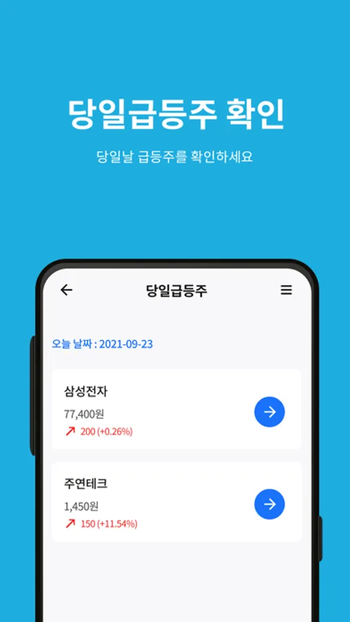 - 일자별 급등한 종목들을 실시간으로 확인할 수 있습니다.