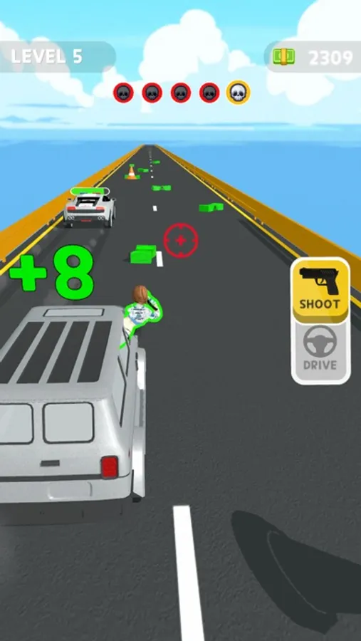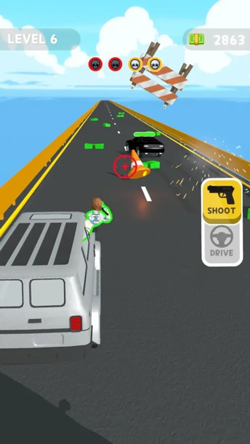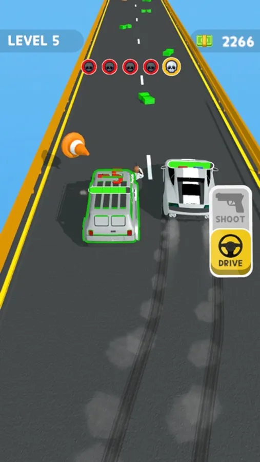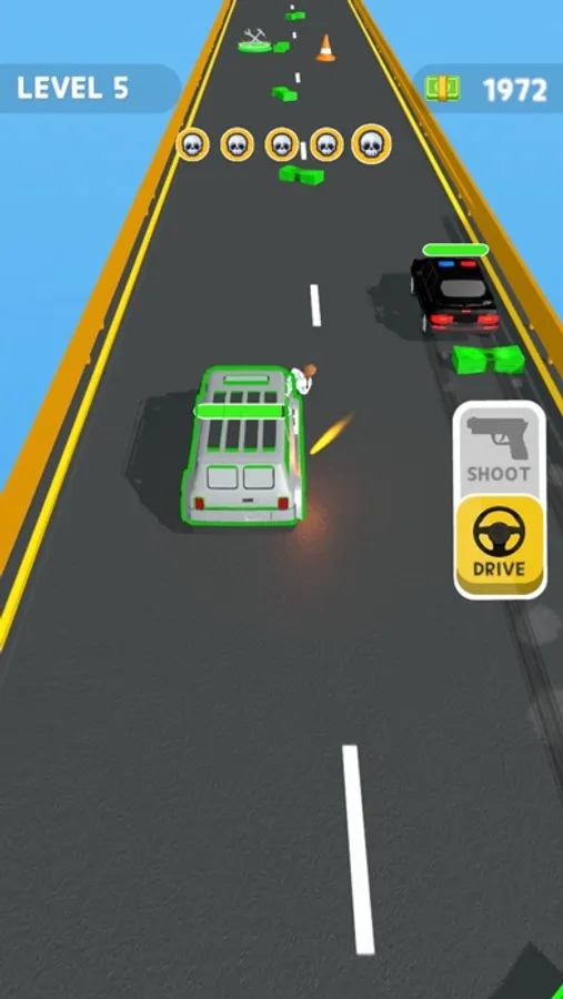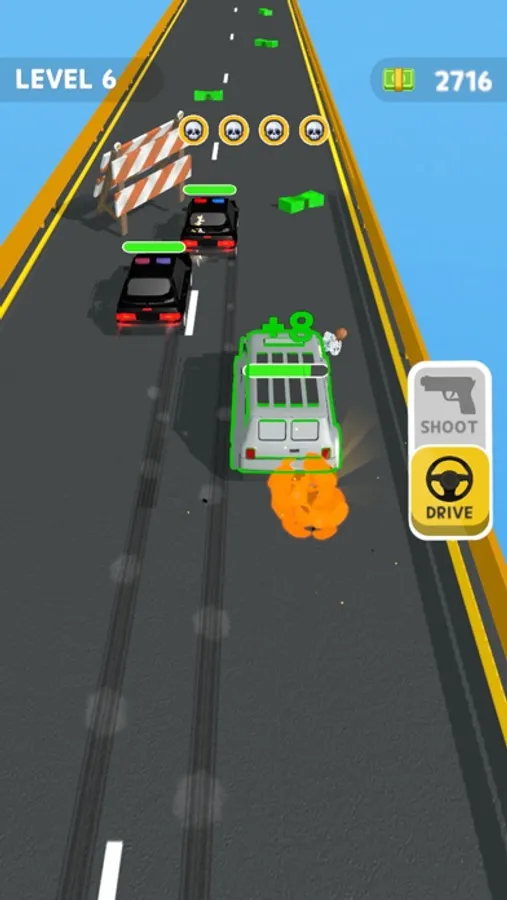 Get ready for a chase to the death. The cops are after you. Try to reach the finish without getting caught by them. you can control the vehicle and get them out of the way or if you want, equip your gun and rain bullets on them all. Watch out for obstacles