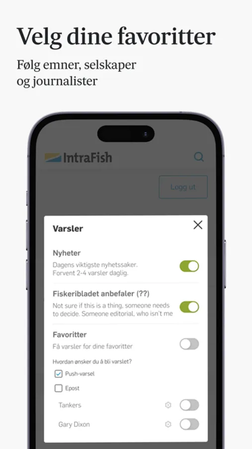 • Hvis du ikke er kjent med IntraFish, kan du opprette en registrert brukerkonto i appen og få et utvalg av vårt beste innhold før du kjøper en av abonnementspakkene våre. Har du problemer med å logge på eller andre tekniske problemer? Ta kontakt med kundeservice på 55213300.