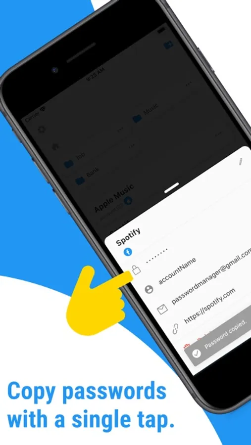 - Copy your password, email address, and account name with a single tap.