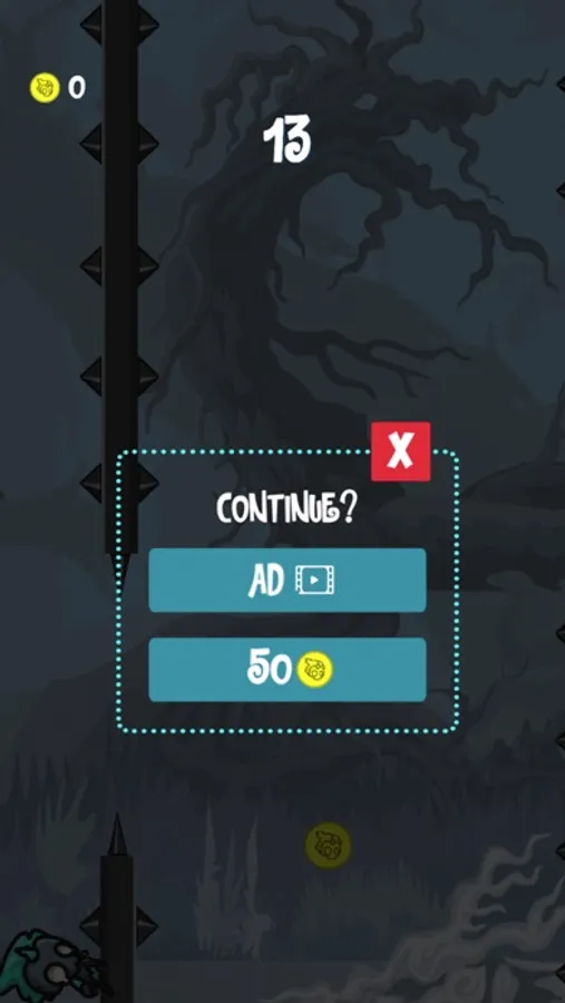Reach the highest score possible with this 1-tap casual game, collect coins to be able to use them to continue a game after death, and share a screenshot of your best score on your social media to engage with friends!