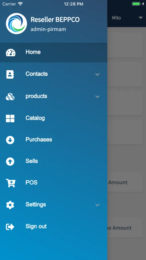 this app is used by Beppco company internally, the admins can check their dashboard, check and edit Contacts, check and add products, check sales & purchases, and make sales invoices to their clients, employees can send orders back to their HQ and they can check their sales.