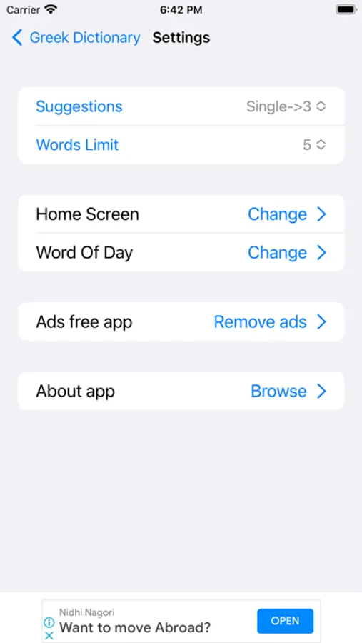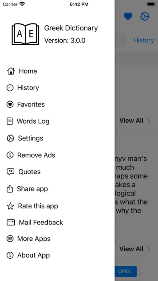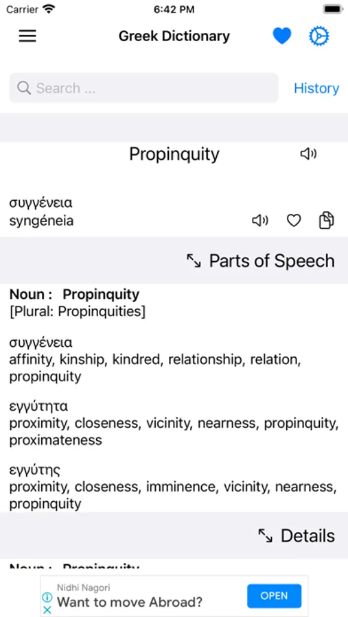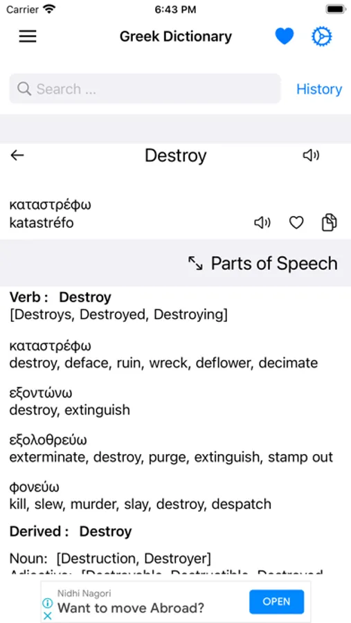 This app includes meaning of word in Greek, synonyms, antonyms and other advanced features