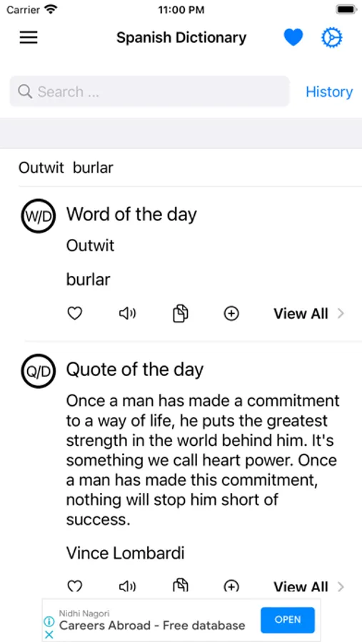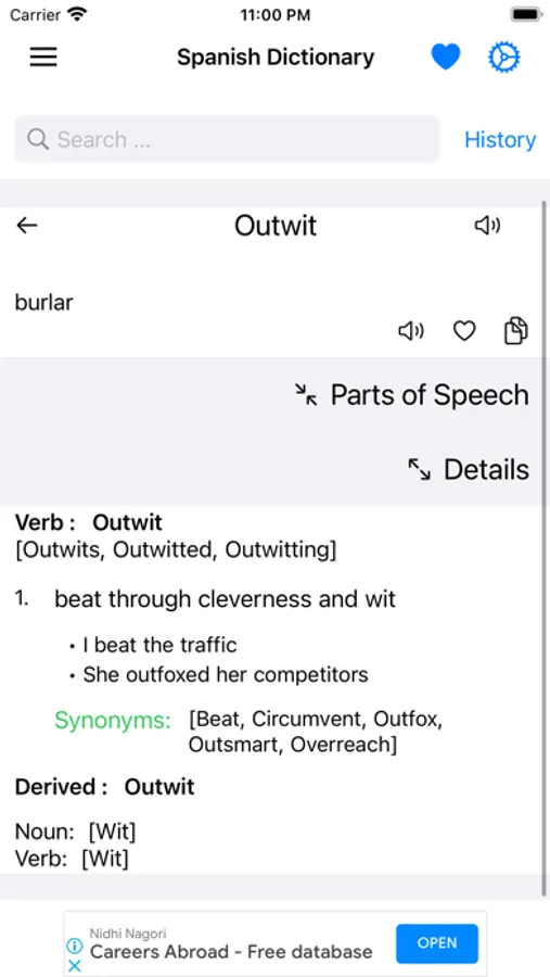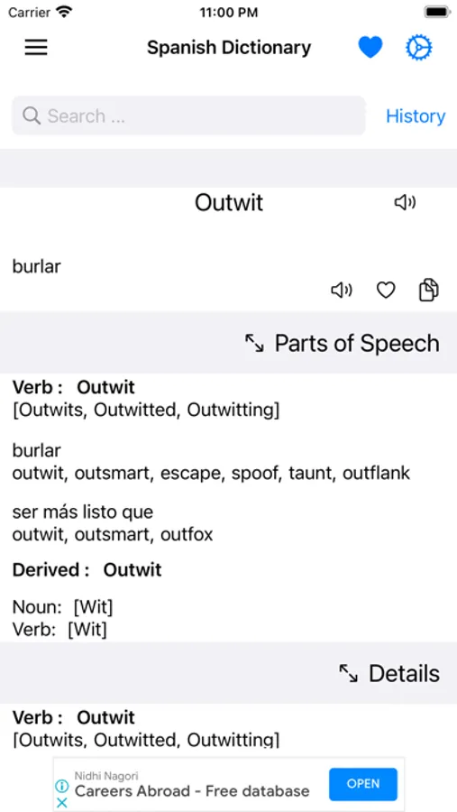 This app includes meaning of word in Spanish, synonyms, antonyms and other advanced features