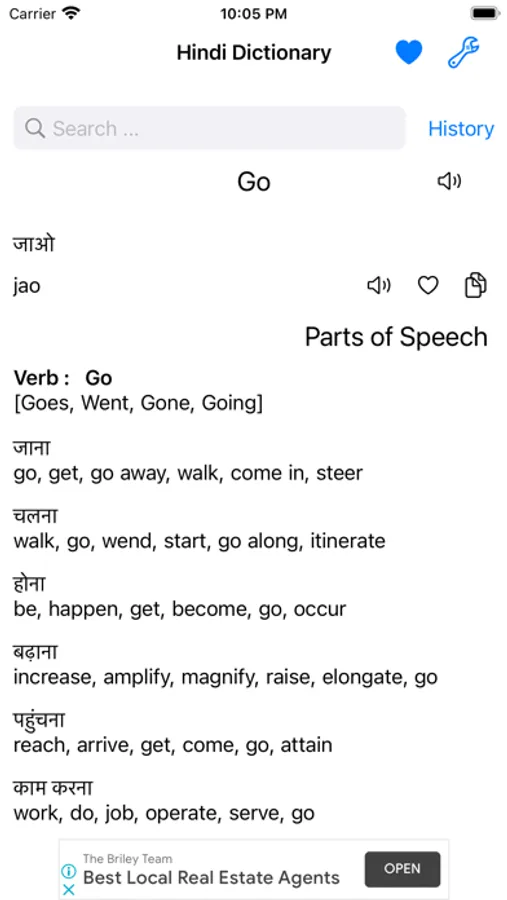 This app includes meaning of word in Hindi, synonyms, antonyms and other advanced features