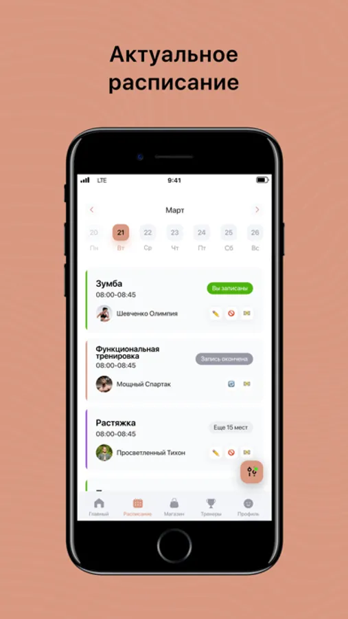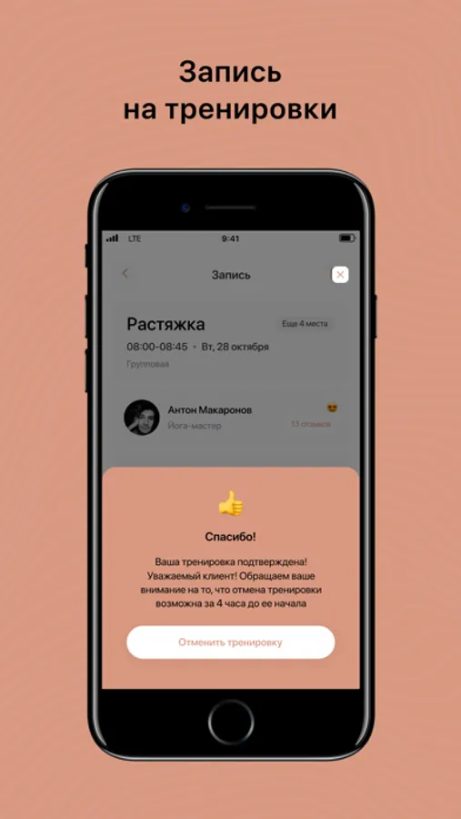 - Получать PUSH-уведомления о предстоящей тренировке за 24 часа;