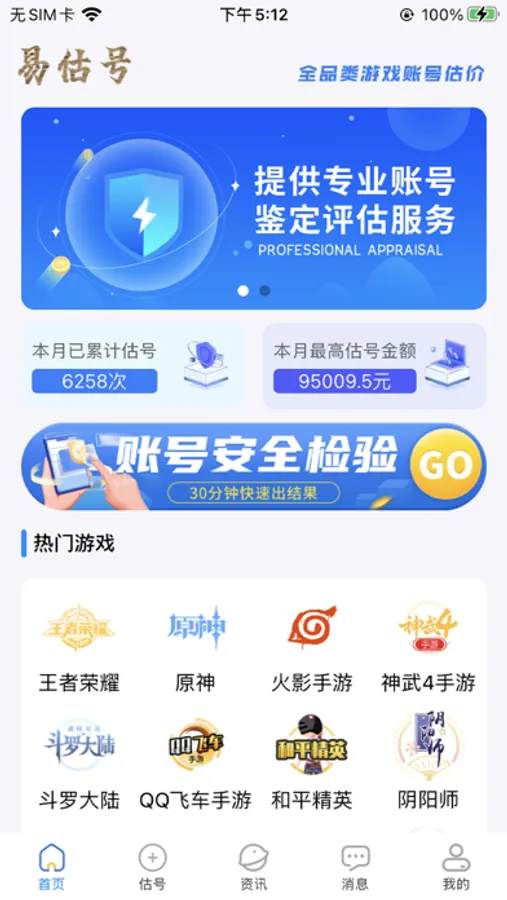【十大品类,在线评估】想知道自己的游戏账号值多少钱,可以使用易估号游戏账号估价,提供王者荣耀、和平精英、原神等热门手游游戏账号估值服务,大平台更靠谱,智能估计、直接交易。