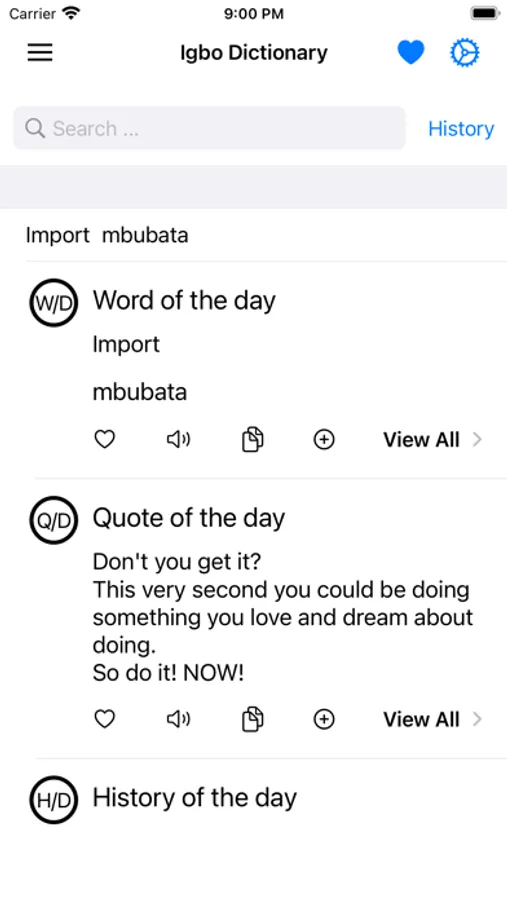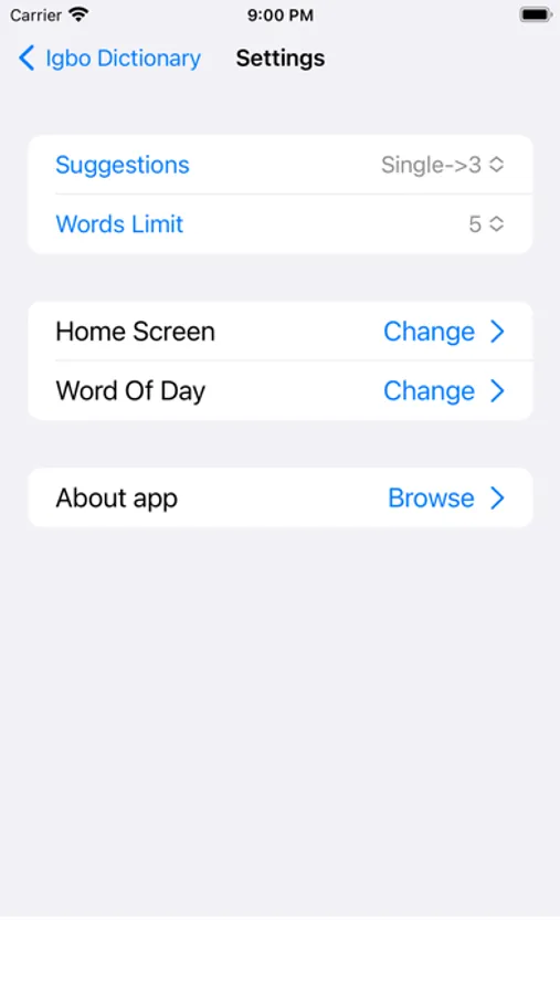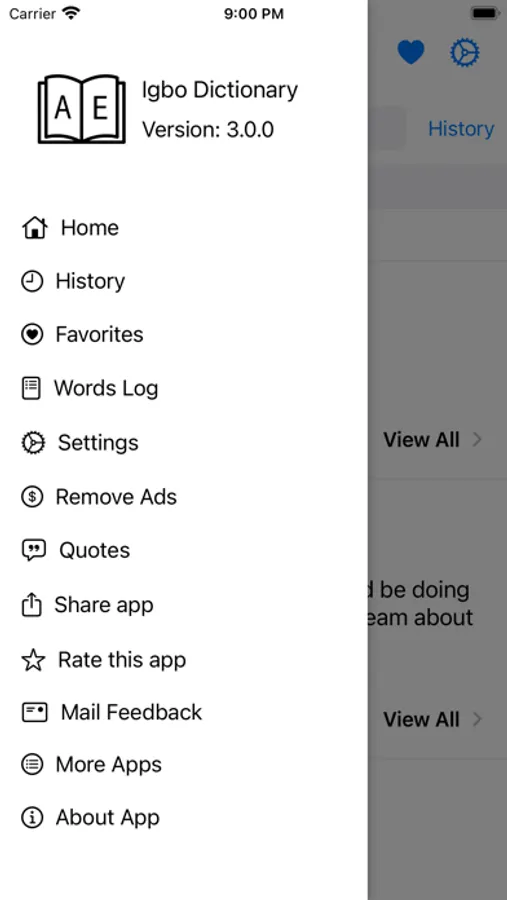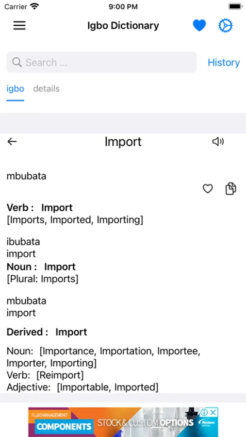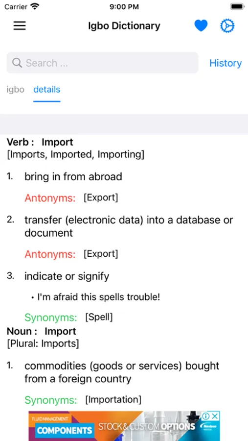This app includes meaning of word in Igbo, synonyms, antonyms and other advanced features