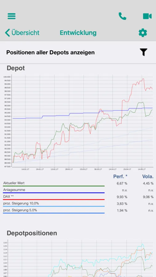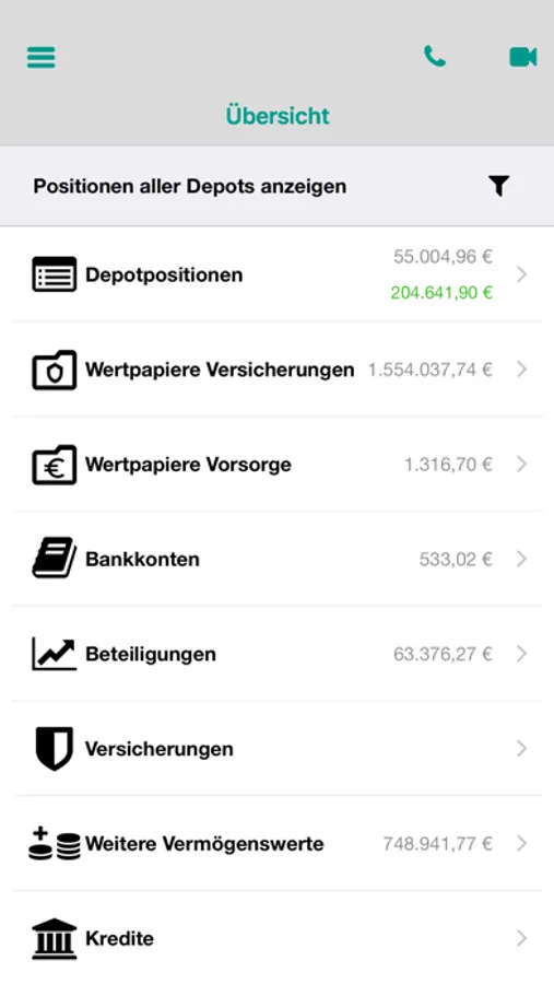 - Konsolidierte Vermögensübersicht inkl. aller Fondsanteile, Versicherungen, Beteiligungen und Bankkonten