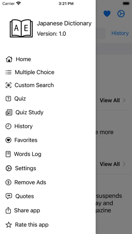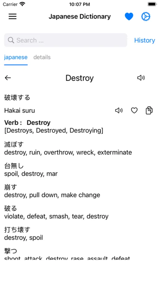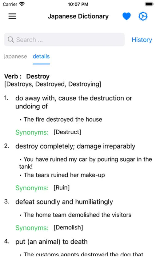 This app includes meaning of word in Japanese, synonyms, antonyms and other advanced features