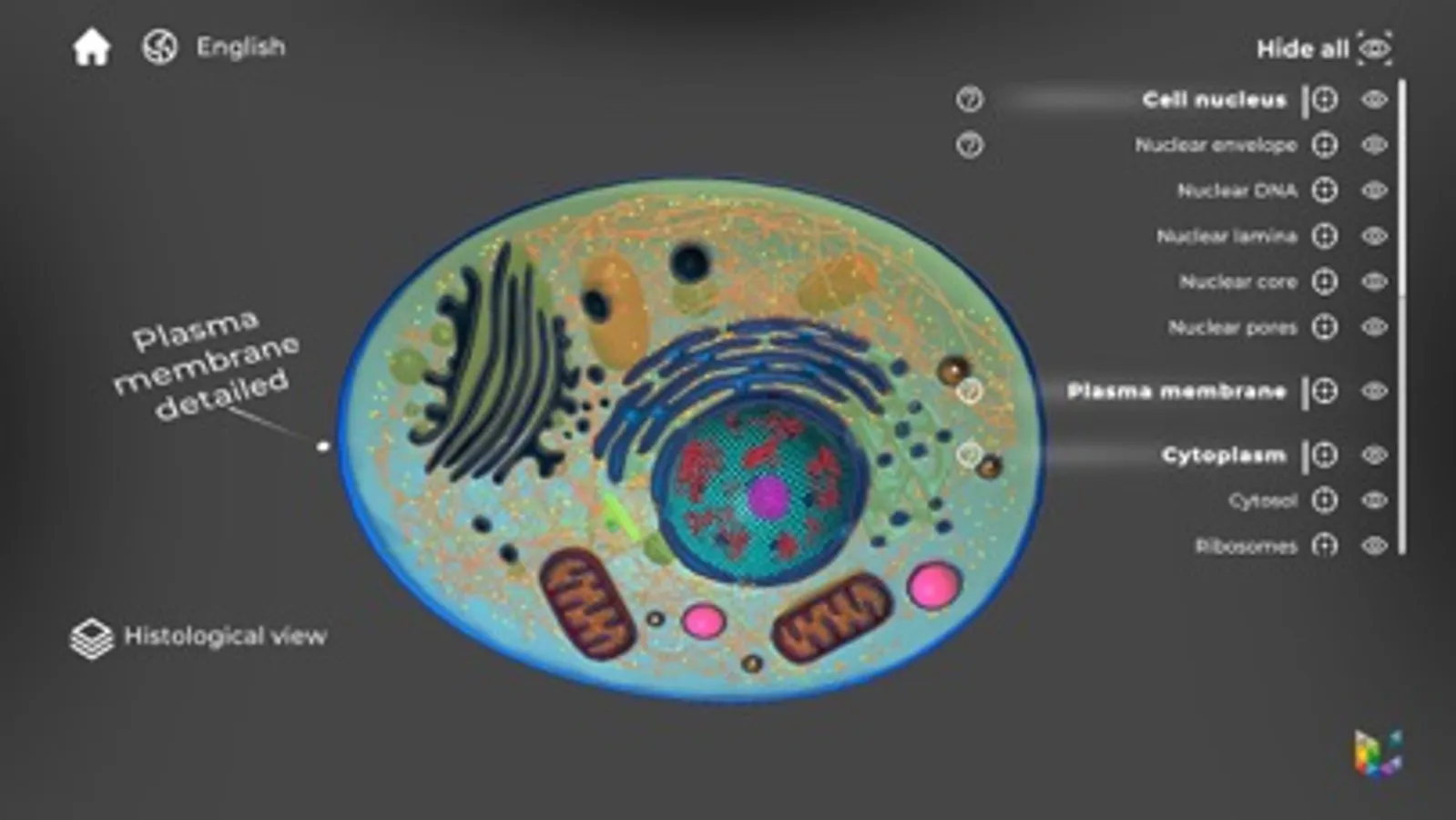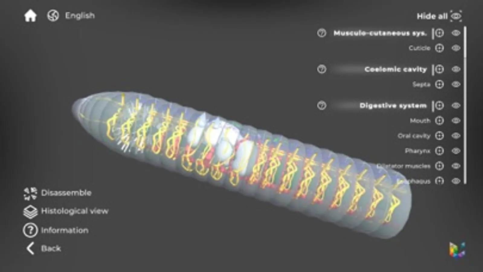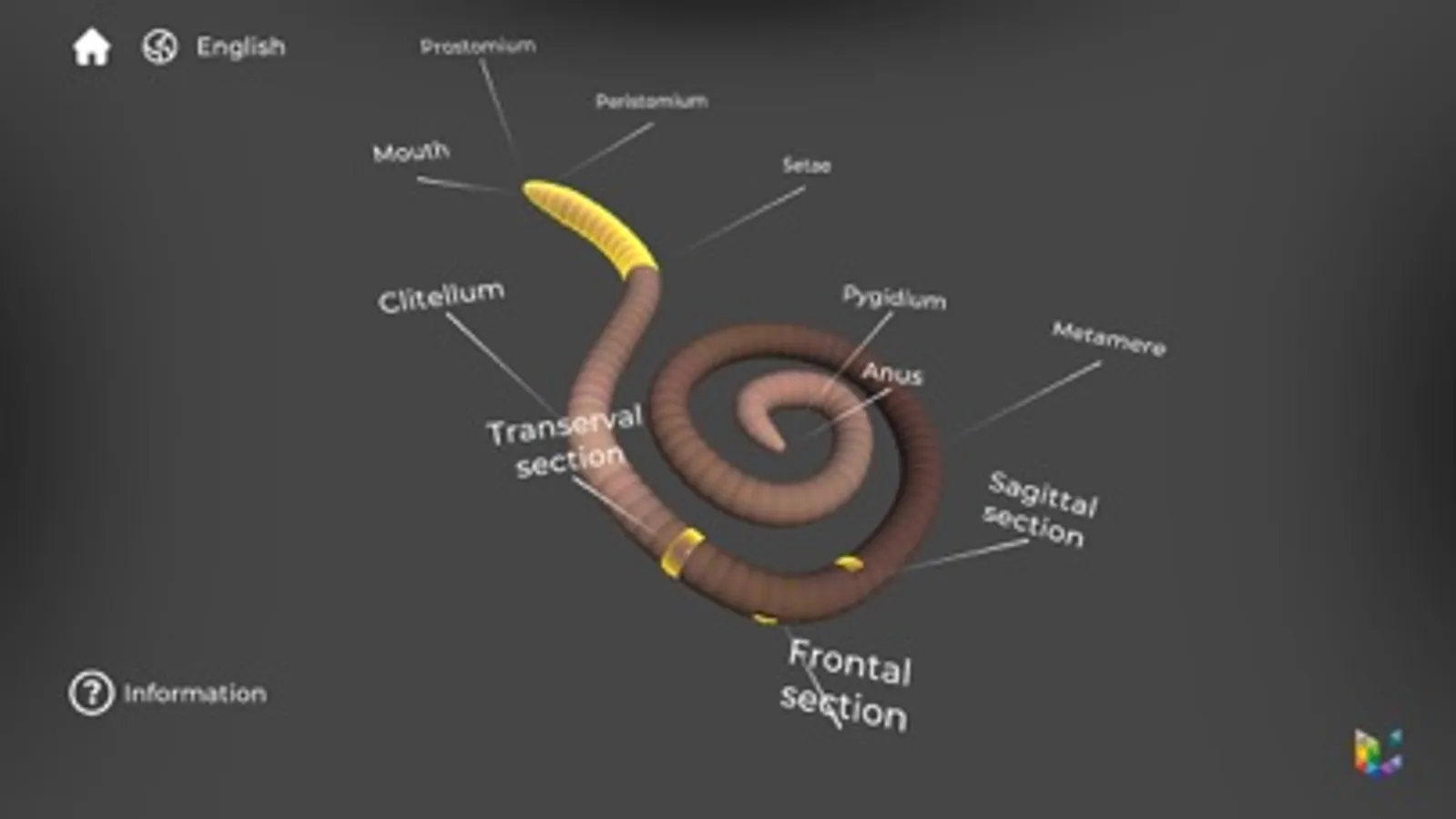 The application is aimed at students from high school to graduate school as well as all curious people. We currently show the cell and the earthworm but other organisms will be added soon. The principle is to visualize biological structures and to learn to identify the different parts with the help of 3D and list boxes. The main interest is to make the link between theory (the 3D object) and practical observations (real objects from histology). The user can thus take advantage of the 3D structures to understand figures usually given in courses and in textbooks. The data correspond perfectly with the courses generally taught in this field. In the earthworm, it is also possible to understand the organization of the main systems through the visualization of different cross-sections, and it helps to understand these different section. The application also provides (in French and English) explanatory texts for the different structures.