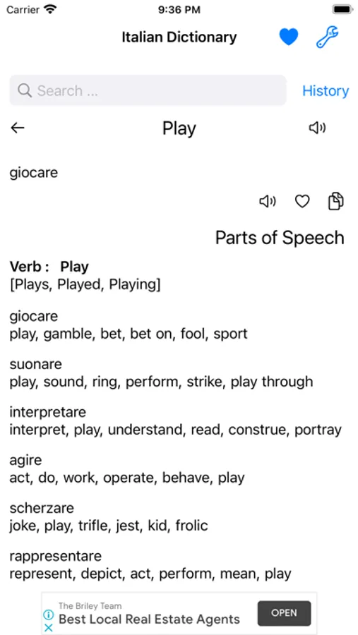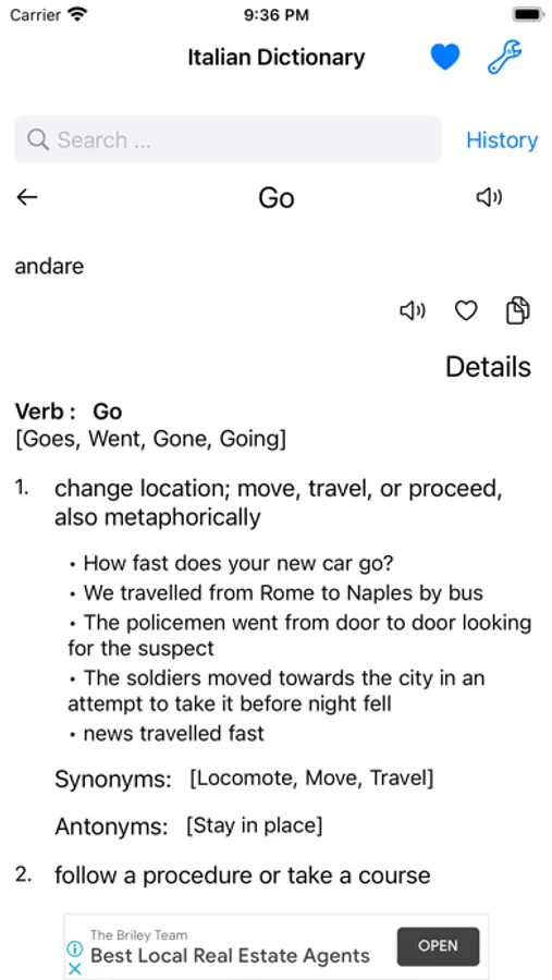 This app includes meaning of word in Italian, synonyms, antonyms and other advanced features
