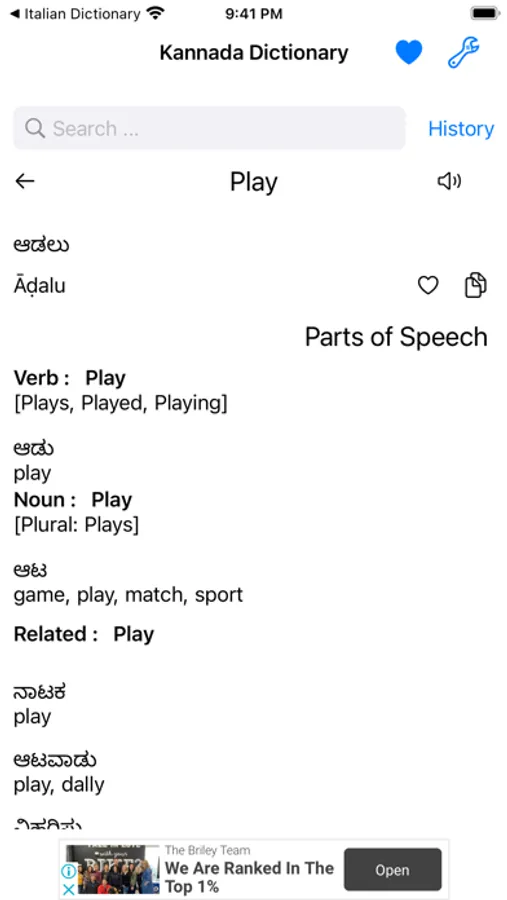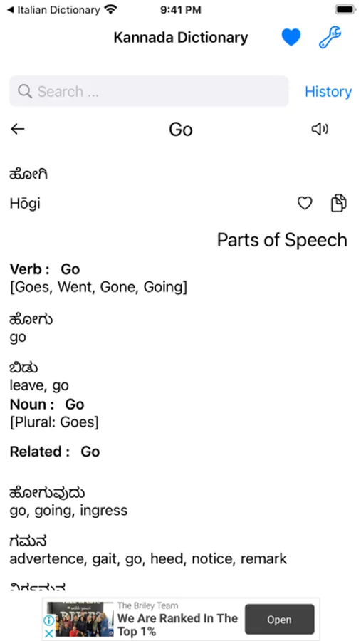This app includes meaning of word in Kannada, synonyms, antonyms and other advanced features