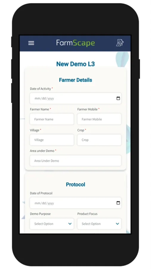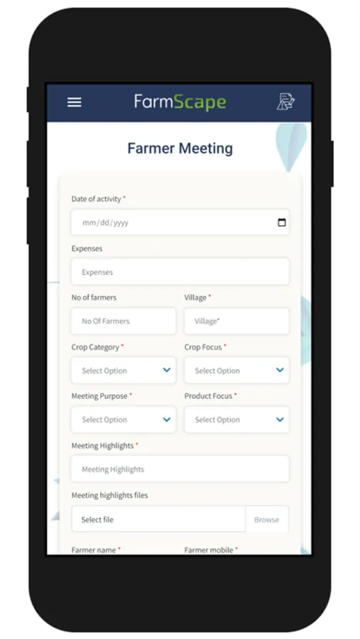 Field Agronomists report their activities to their supervisors and managers using FarmScape. There are various activity forms, files can be attached