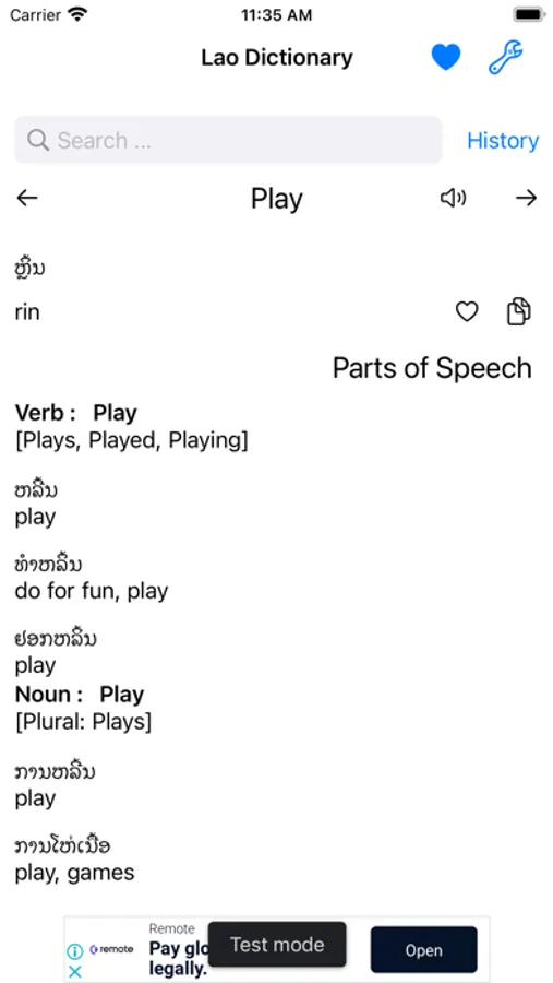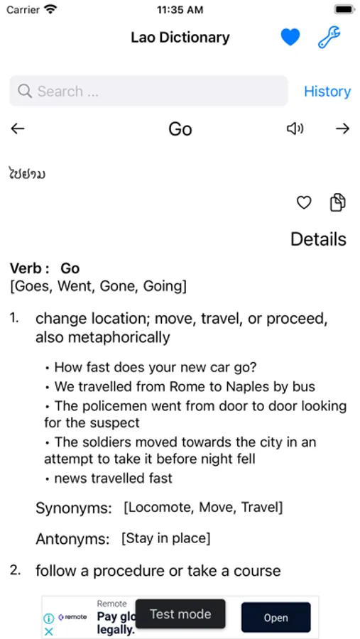 This app includes meaning of word in Lao, synonyms, antonyms and other advanced features