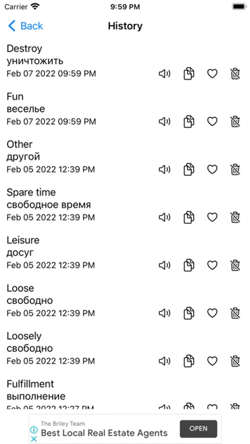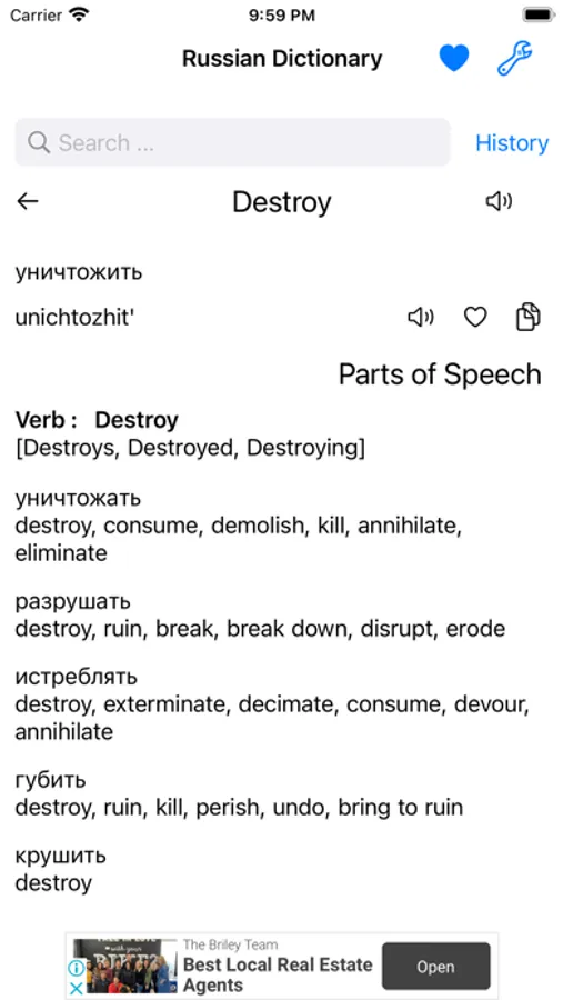This app includes meaning of word in Russian, synonyms, antonyms and other advanced features