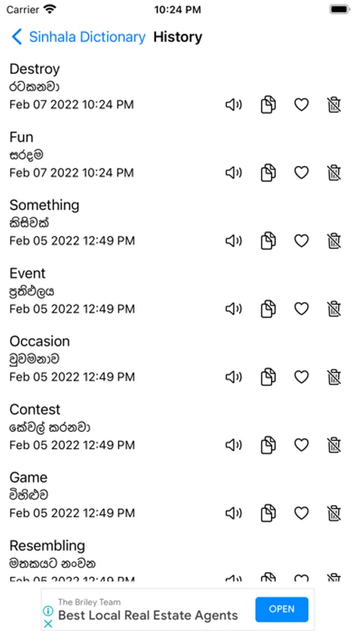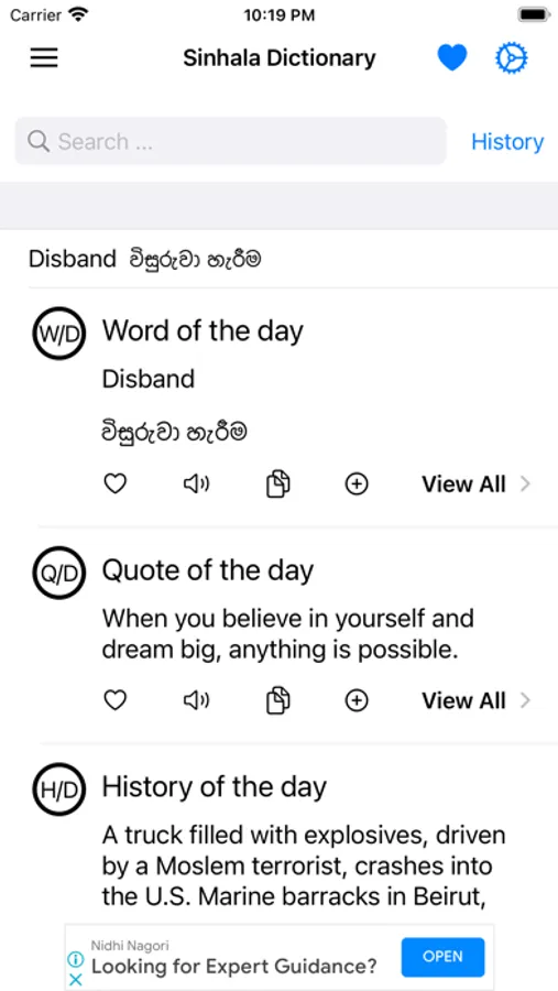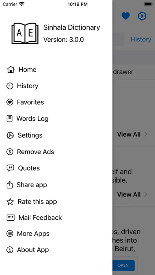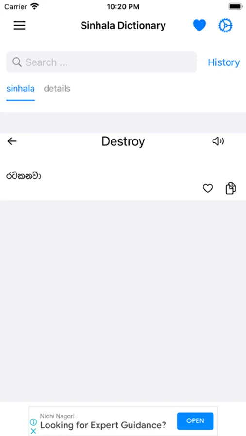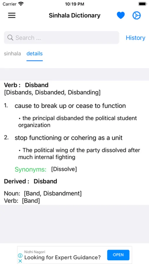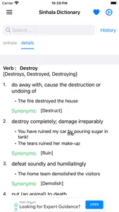 This app includes meaning of word in Sinhala, synonyms, antonyms and other advanced features