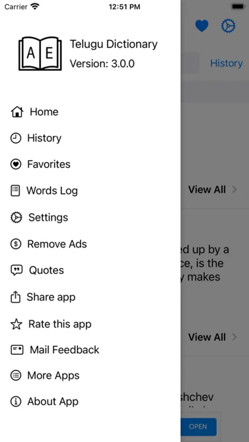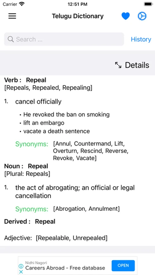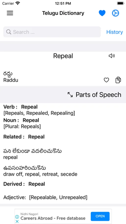 This app includes meaning of word in Telugu, synonyms, antonyms and other advanced features