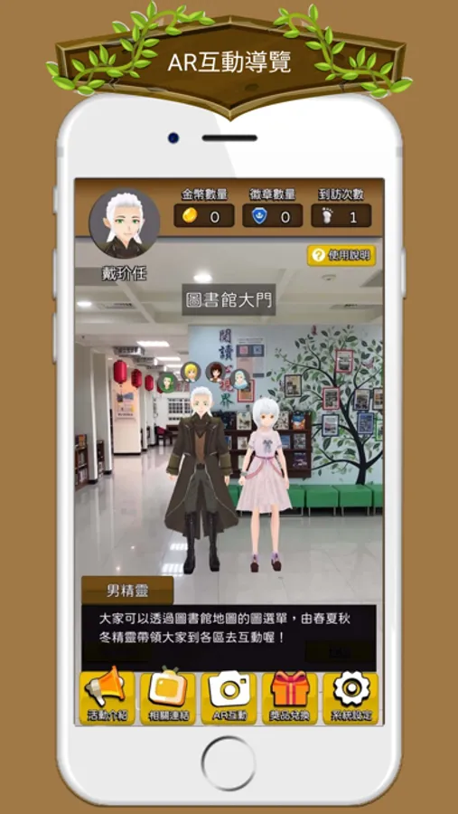 每個區域關卡都有3D角色導覽說明,可拍照、打卡與遊戲互動,關卡任務主要分為五大類型,分別是書架分類、國家分類(書籍與它的產地、認識姊妹校)、知識測驗、科學動腦時間(實驗問答、魔法實驗)、藏書找尋(輸入分類碼)以及書籍躲貓貓(依線索找出藏在圖書館各個角落的指定書籍)。請一一克服關卡,得到獎勵吧!