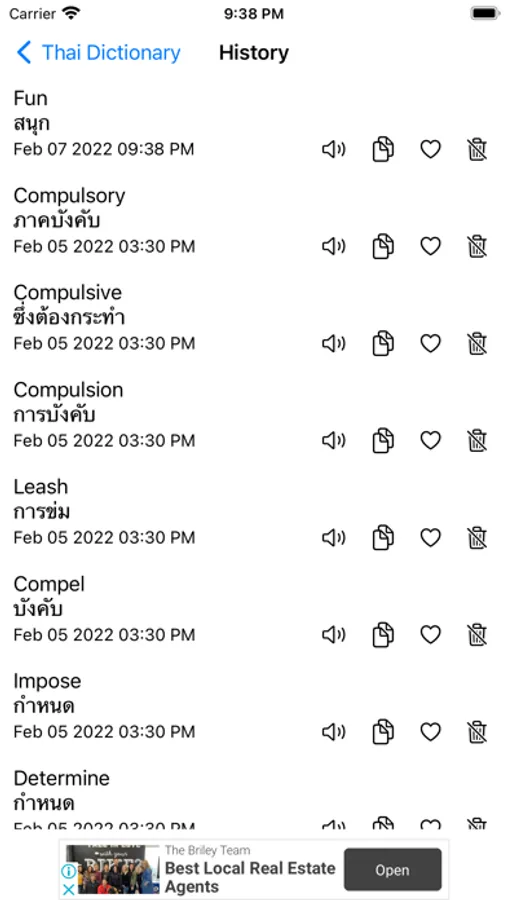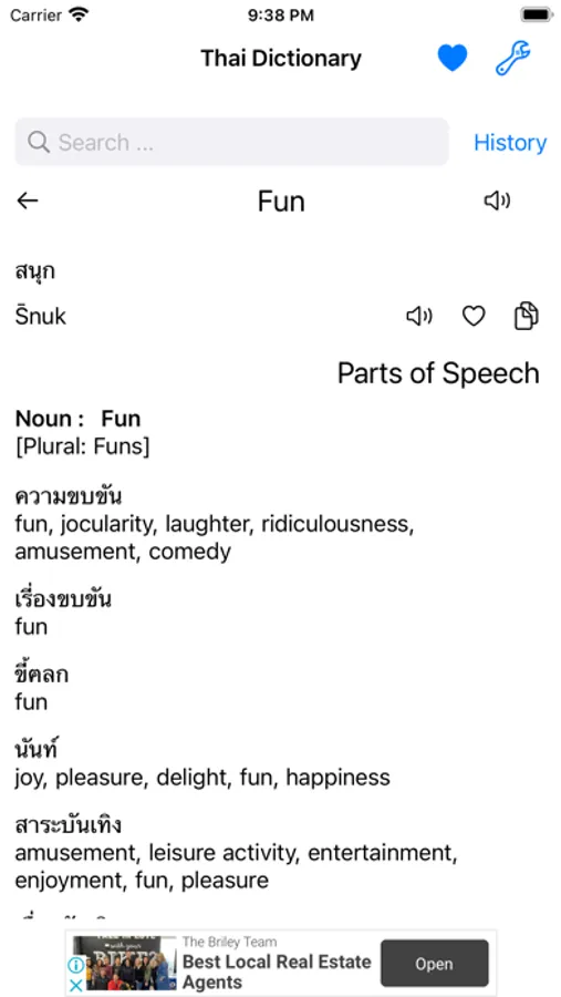 This app includes meaning of word in Thai, synonyms, antonyms and other advanced features