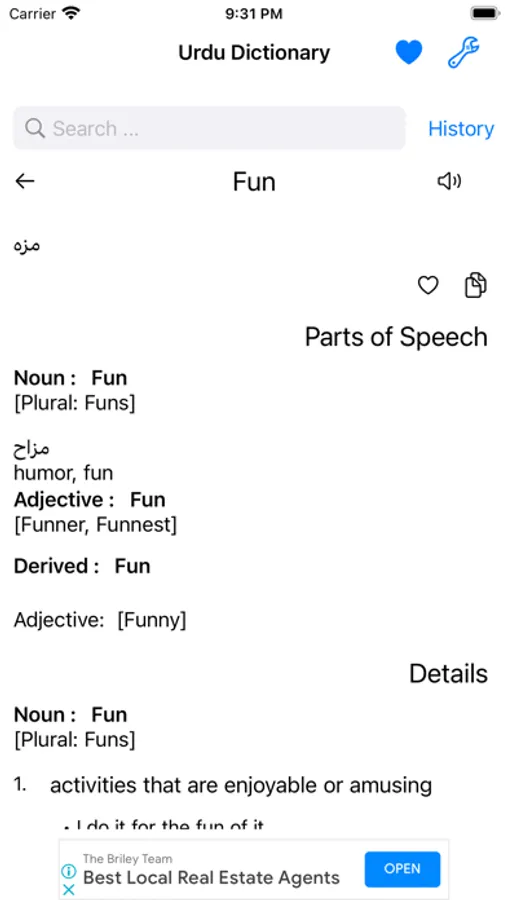 This app includes meaning of word in Urdu, synonyms, antonyms and other advanced features