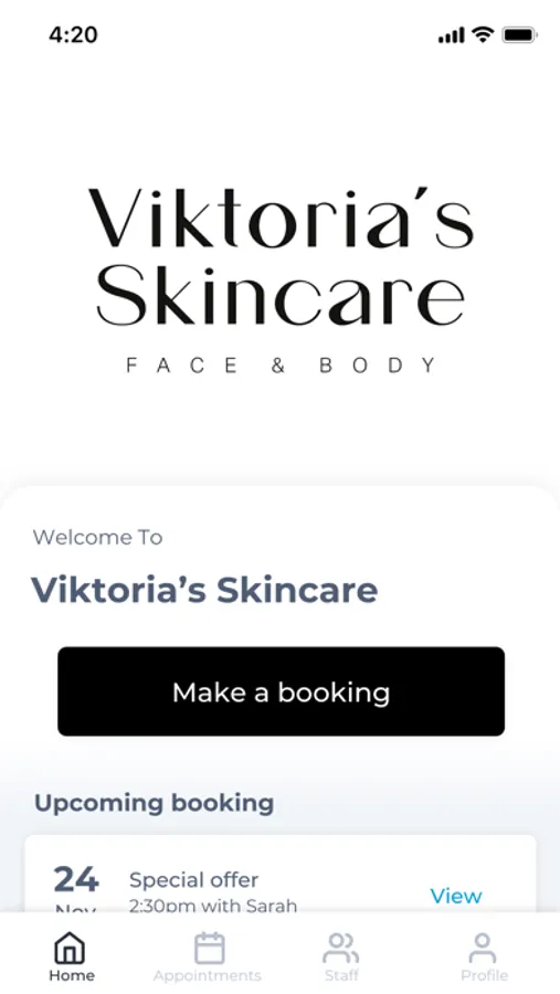 The Viktoria’s Skincare app makes booking your appointments and managing your loyalty points even easier. You're just a few taps away from feeling good and looking great!