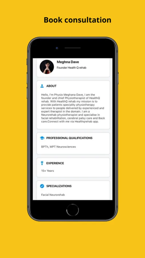 HealthQ rehab is a physical rehab platform on the mission to provide effective, efficient, affordable and accessible physiotherapy and physical rehab services to people with various movement related disorders. Our team of specialist physiotherapist comprise to specialist like musculoskeletal physiotherapist, neuro rehab physiotherapist, pediatric physiotherapist, women's health physiotherapist, cardiopulmonary physiotherapist, sports physiotherapist and yoga therapist.